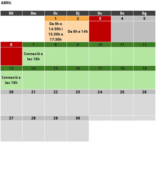- Inicio y final: 21/03/2026 - 19/04/2026